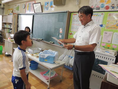 9月の読破賞表彰を、10月3日、8日、17日の給食の時間に行いました。今回表彰されたのは、1年生5名、2年生6名、3年生11名、4年生2名、5年生1名、すこやか1名の計26名と、たくさんの児童が表彰されました。