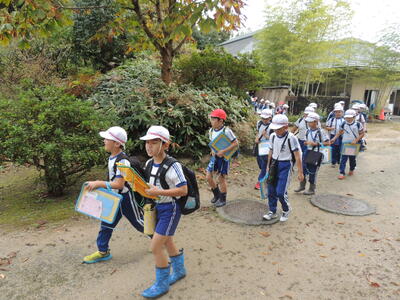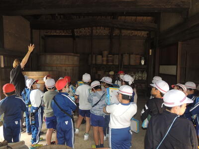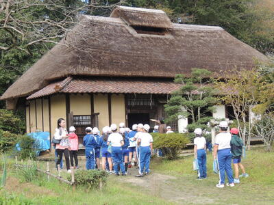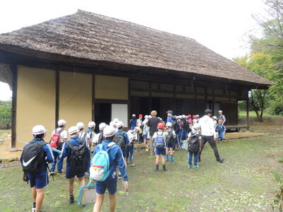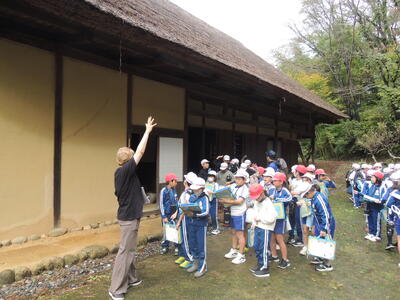 暮らしの伝承鄕では、各学級ごとに案内の方が1名ずつ付き、古民家のことや昔の道具、昔の生活について説明してくださいました。子どもたちも、興味深く聞いていました。また、古民家でお弁当を食べ、友達と楽しい時間を過ごしました。
