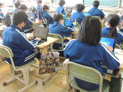 早寝・早起き・朝ごはんやゲームとの関わり方など、基本的な生活習慣の見直しと確立に向け、毎週火曜日の朝、生活習慣調べを行っています。今回から、端末を使い自分の生活を振り返っています。