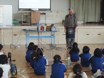 3年生の社会科「かわる道具とくらし」の学習で、呉服屋の方をゲストにお迎えし、ふろしきの様々な包み方などを教えていただきました。今日は、保護者の方々にもご参加いただきありがとうございました。