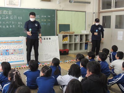 今日は、3年生にけん玉名人の先生方にお越しいただき、けん玉教室を行いました。いろいろな技と一緒に、難しいと思うことも投げ出さずにやり続けることの大切さも教えていただきました。