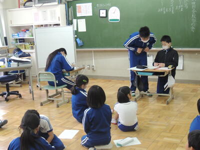 今日で2月が終わり、明日から3月です。年度末は時間が過ぎるのが本当に早いですね。4年生では、学級会で最後のお楽しみ会の計画について話し合っています。5年生では、外国語科の授業でALTの先生と「日常生活やあこがれの人」について英語でたずね合う学習に取り組んでいました。