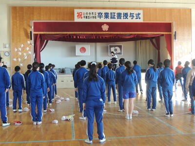 今日は、22日の卒業証書授与式に向けた予行を行いました。いよいよ小学校生活が残りわずかだと感じた6年生も多かったようです。式当日には参列しない5年生も、来年の自分たちの姿を思い浮かべながら参加しました。