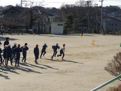 今日は雨水です。雪から雨に変わる頃というとおり、学校のウメの花も次々と咲き始めています。春のような暖かさの中、元気に運動に取り組んでいます。