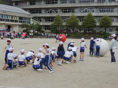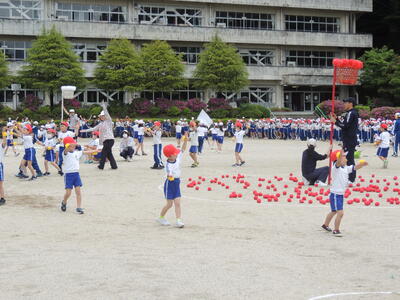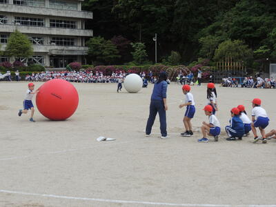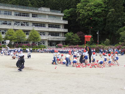 1年生は「五小音頭DE玉入れ」2年生は「それゆけ大玉ころがし」
