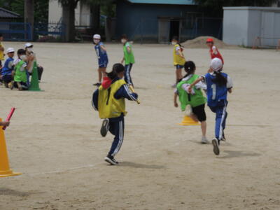 上学年(4~6年生)の紅白リレーの練習を行いました。
