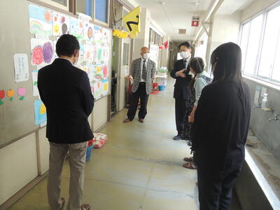 の方にもあいさつをしながら、楽しく学校内を見て回っていました。