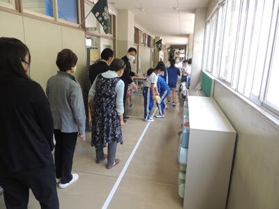 低学年は、2年生が1年生に校舎内を案内、紹介する活動をしていて、廊下で出会う評議員