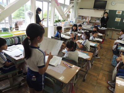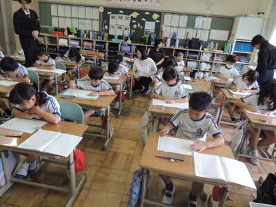 2校時に3年3組で国語科「すがたをかえる大豆」の授業、4校時には2年3組で国語科「なかまのことばとかん字」の授業がそれぞれ行われ、子どもたちも意欲的に学習に取り組みました。
