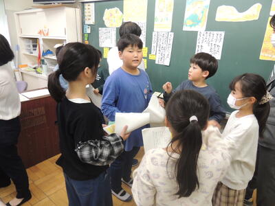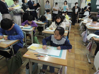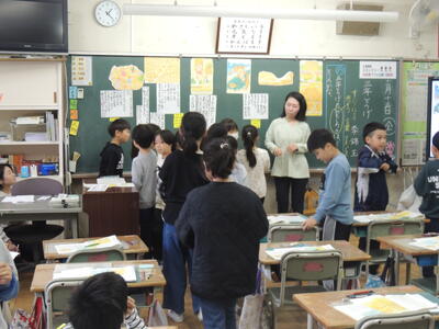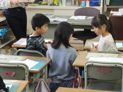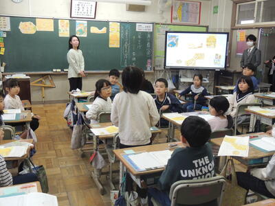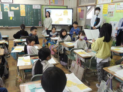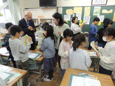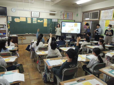 3年3組の授業では、「三年とうげ」のおもしろさはどんなところか、一人一人場面シートや付箋を活用して考え、いろいろな友達と伝え合って交流していました。発表や意見交流も活発で、対話を通して自分の見方や考え方を広げたり深めたりすることができました。