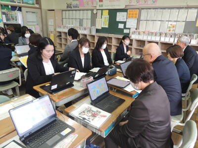 研究授業の後、先生方で事後研究会を行いました。ワールドカフェ方式のグループ協議で授業の良かった点、課題となる点などについて話し合いました。