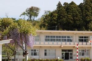 校庭脇には藤がきれいに咲いています。