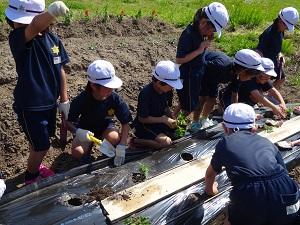 2年生では生活科の学習でトマトの苗を植えました。