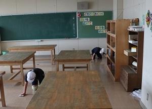 図工室を少ない人数で一生懸命きれいにしていました。