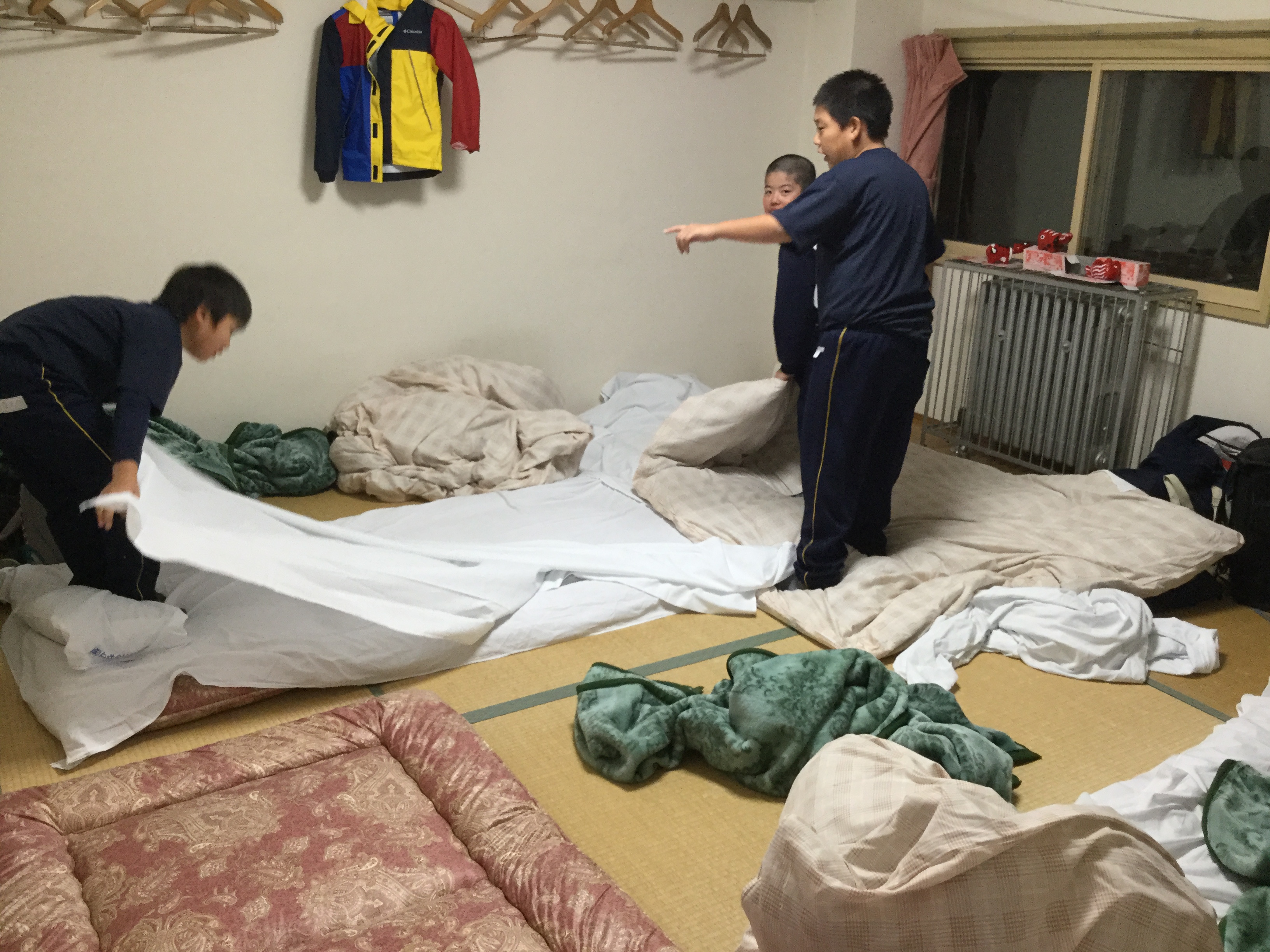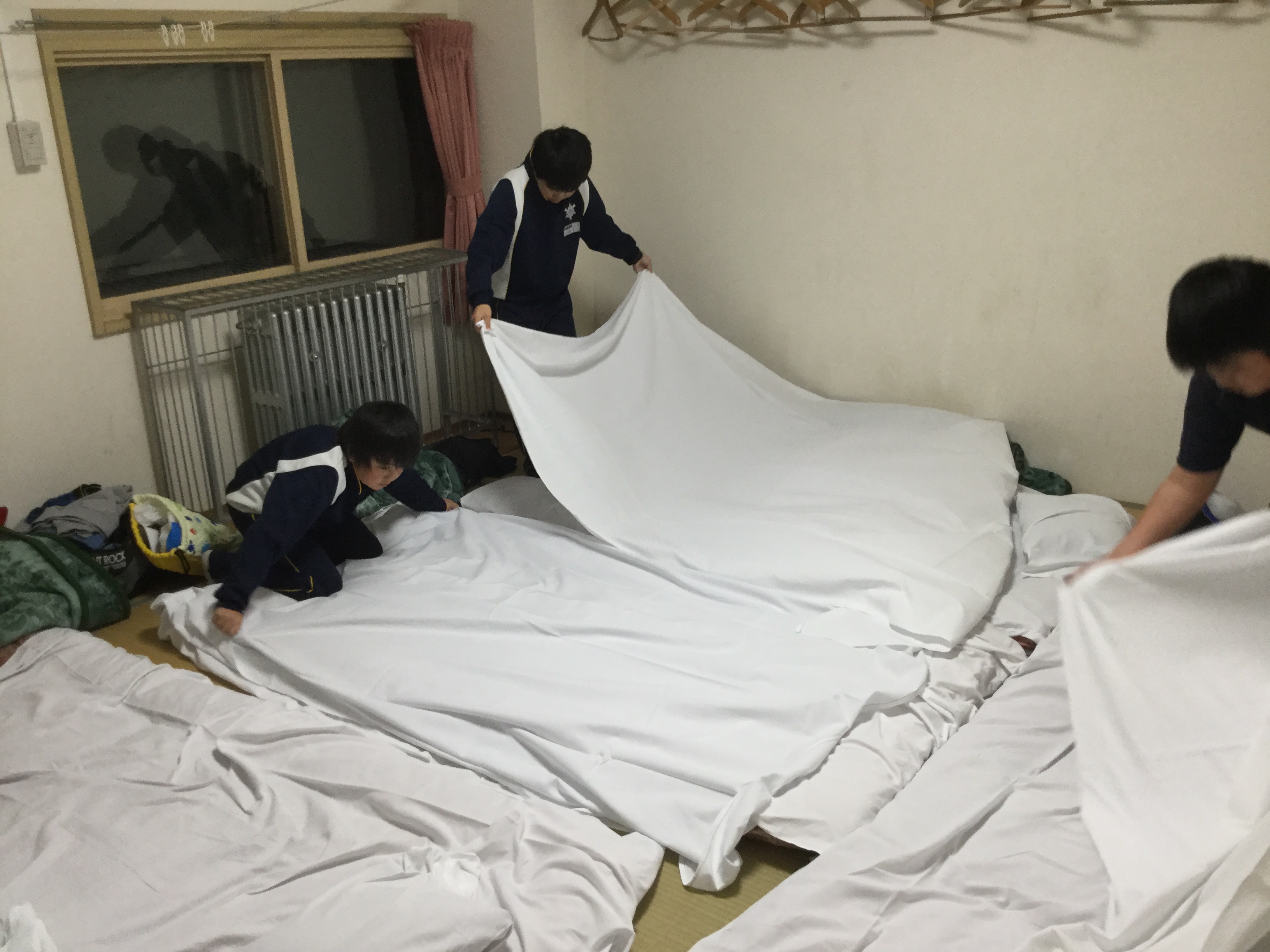 朝起きたら身支度を整え、清掃、朝の集いです。