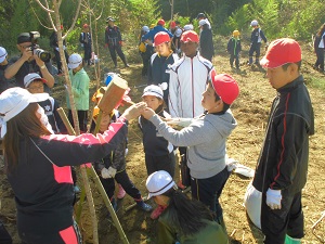 班のみんなで反省会、記憶に残る植樹になりました。