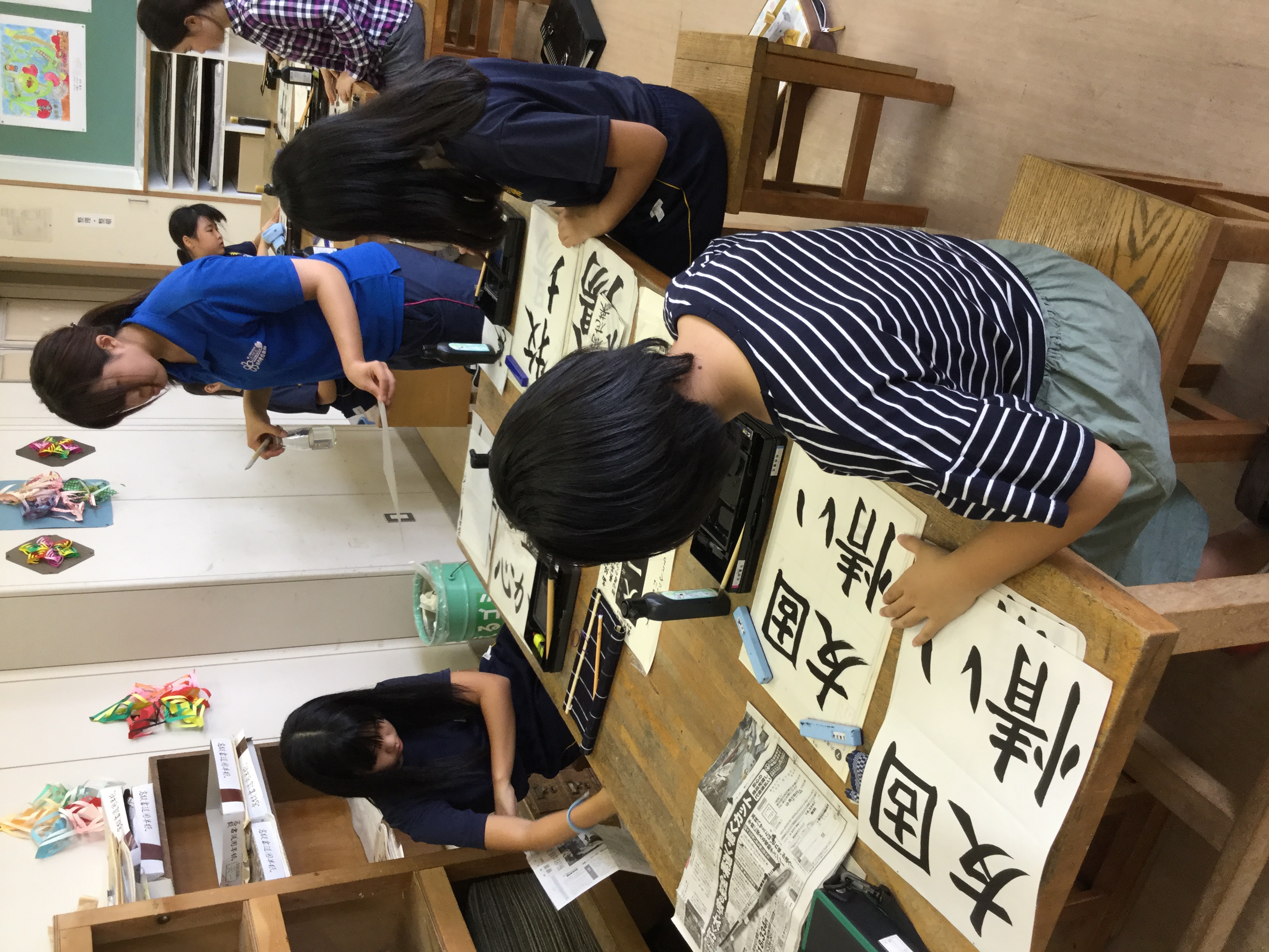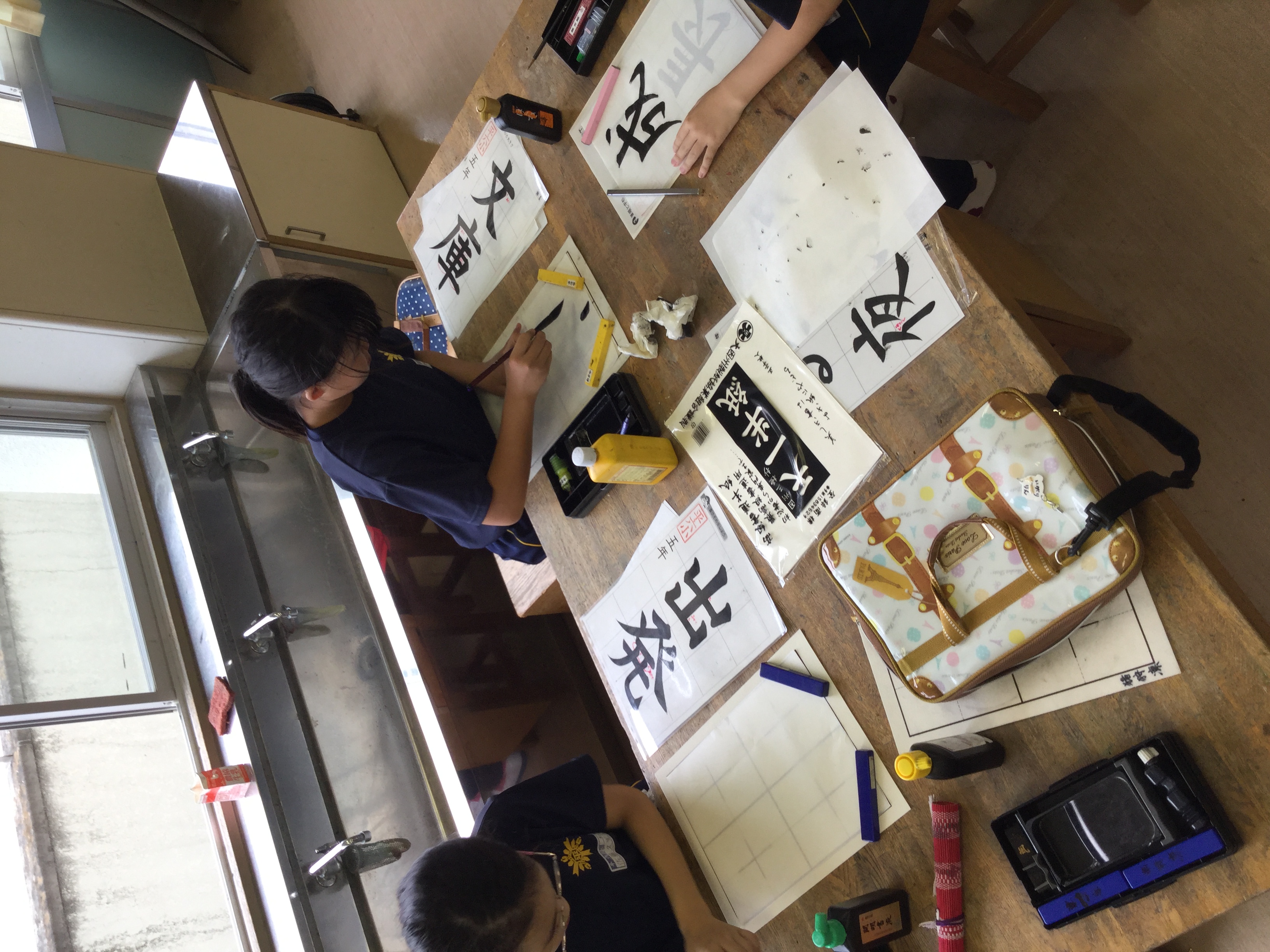 代表になった児童は良い姿勢で、真剣に目の前の半紙に向かい合っていました。