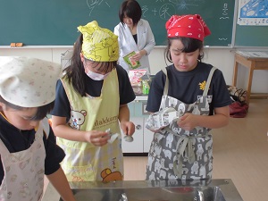 料理や片付けをするうえで、環境を考えて行うエコクッキングを行いました。