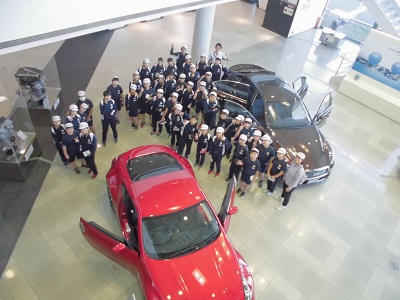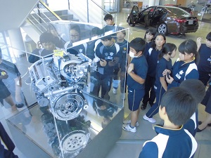 エントランスにはぴかぴかの車や、動いているエンジンが展示されており、