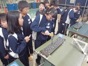実際にエンジンを作っているところを見たり、使用している道具を体験させていただいたりと、
