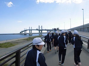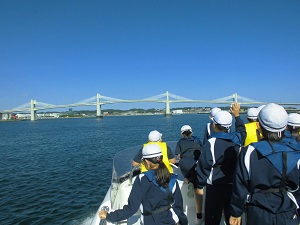 小名浜港では、いわきマリンブリッジを途中まで登り、船に乗って小名浜港周辺を見渡しました。