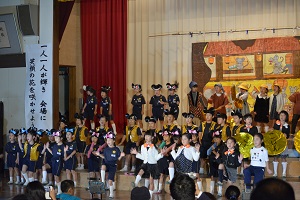 また、全校生で伴奏に合わせて「おもちゃのチャチャチャ」を