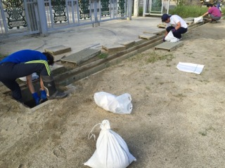 男性の方々には、体育倉庫から校門付近までの側溝に