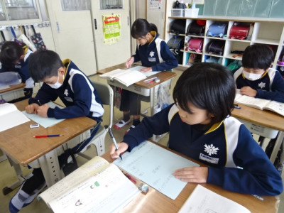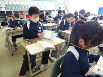 3年生は国語科において、初め・中・終わりで構成する簡単な説明文をつくっています。もとになる資料をよく読んで、わかりやすい文になるよう気をつけています。