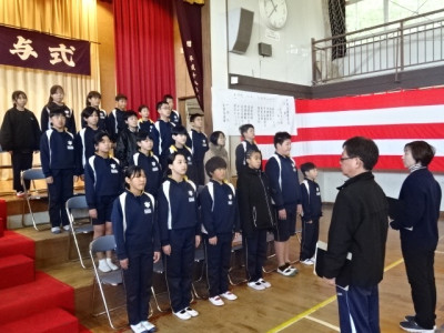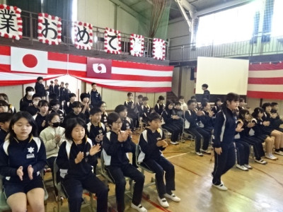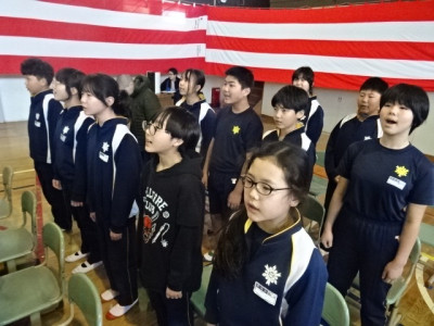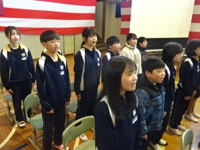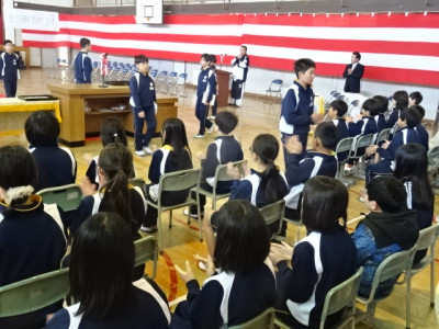 11月11日(火)、本校の6年生が市内の小学校を代表して、クリアファイル贈呈式が行われました。いわき間税会及びいわき税務署の皆様が出席され、税に関するお話やクイズをしていただきました。マスコットキャラクターの「イータくん」も応援していました。お礼の言葉を述べた後、全員で記念写真を撮影しました。