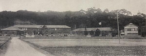 当時の学校の全体像です。4つの大きな建物が見えます。左手前は講堂だったそうです。
