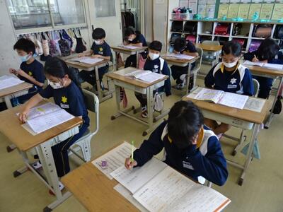 新出の漢字を、読み方や筆順を確認しながら練習していました。