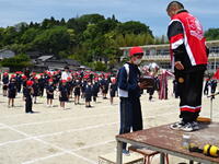 開会式と閉会式の練習を中心に行い、行進の仕方や係児童の動きなどを確認していました。