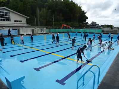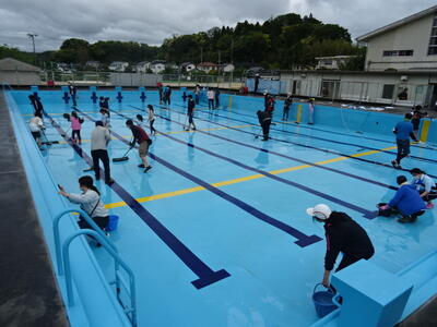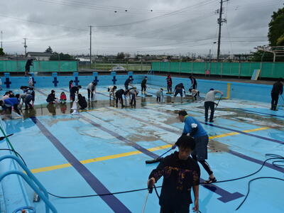 先週の運動会に引き続き、週末のお休みのところ、早朝より学校にお越しいただきました。校舎周りの除草作業とプール清掃をしていただき、見違えるほどきれいになりました。子どもたちの安心・安全な環境作りのためにご奉仕いただいた多くの皆様に、心より御礼申し上げます。