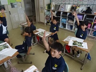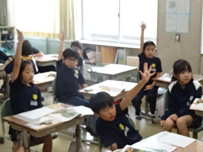 資料「いろいろな生きもの」をもとに、自然を大切にすることについて話し合っていました。