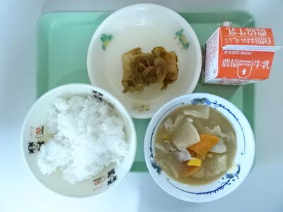 本日のメニューは、ごはん、牛乳、揚げ出し豆腐・あま酢あんかけ、ほうとう でした。