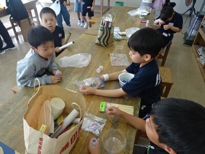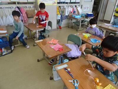いわき支援学校との交流がありました。一緒におもちゃを作ったり、完成したおもちゃで遊んだりして楽しんでいました。