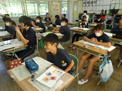 さまざまな角柱や円柱の体積を求める問題に取り組み、学習内容を振り返っていました。