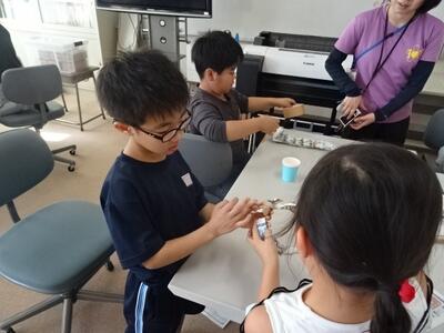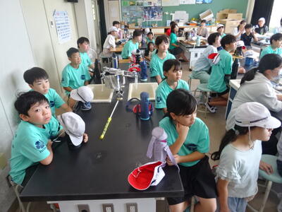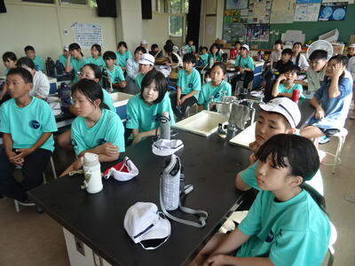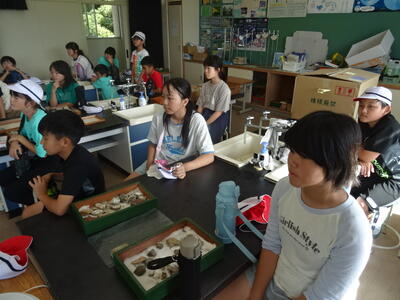 流れる水のはたらきを、実際に川の様子を見に行って確かめてきました。学校に戻ってきてから、実験をとおして学習した内容と重ねて、理解を深めていました。