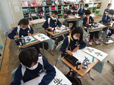 6年 書写の授業の様子です。