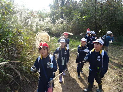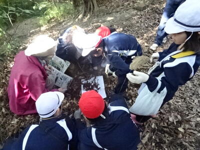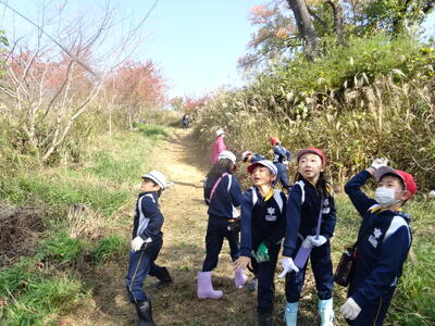 4回目の森林学習です。裏山に登り、 この時期の植物の様子を観察したり、植物で遊んだりしました。