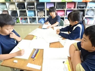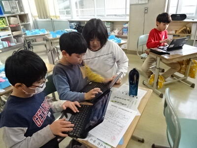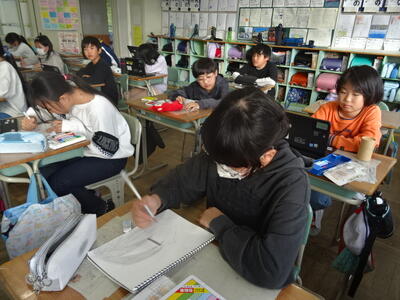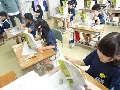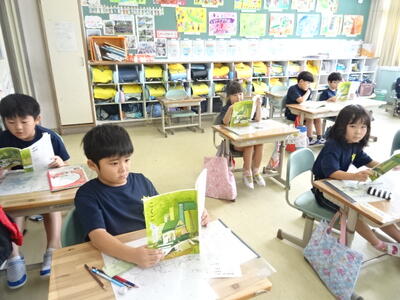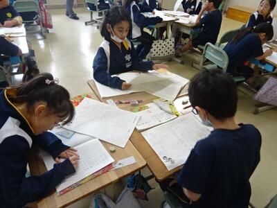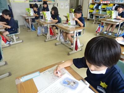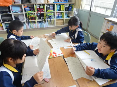 「みきのたからもの」の紹介文が書き終わりました。お互いの紹介文を読んで、感想を伝え合っていました。