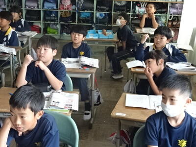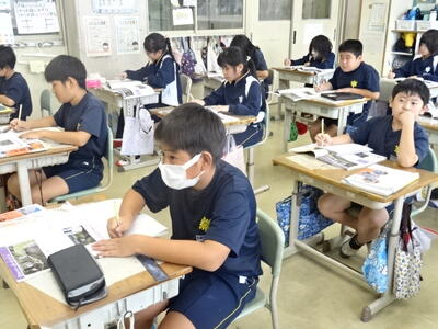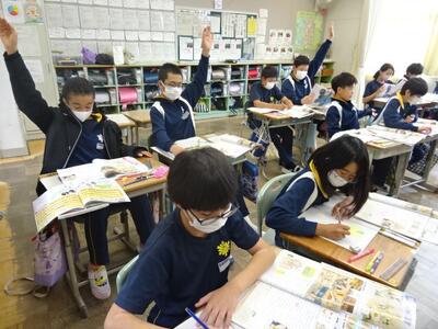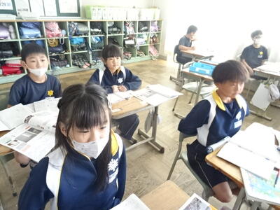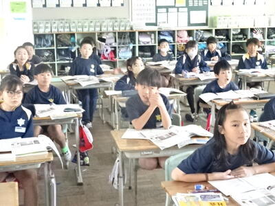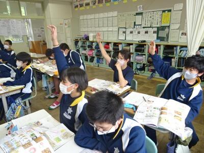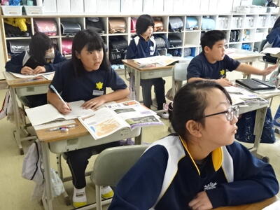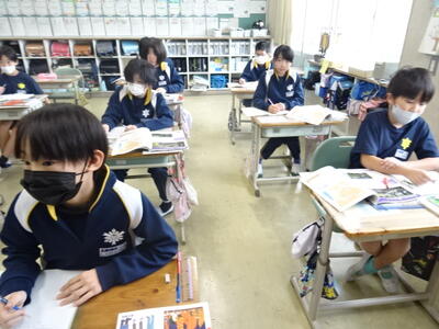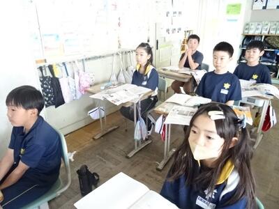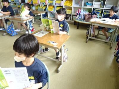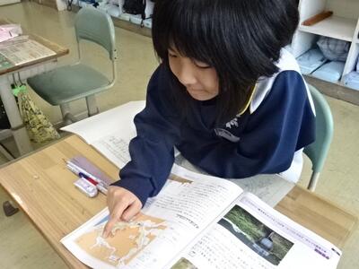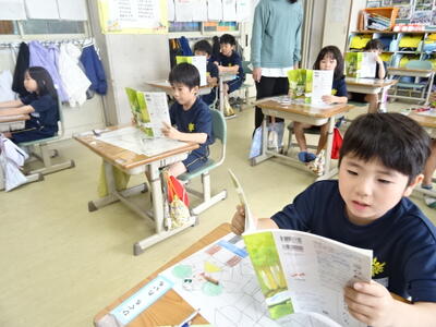 「たぬきの糸車」を読んでいます。個人の後は全員で、音読をしていました。