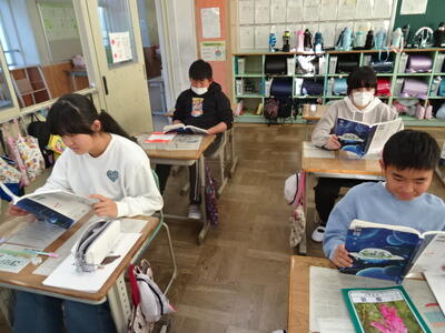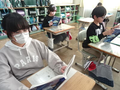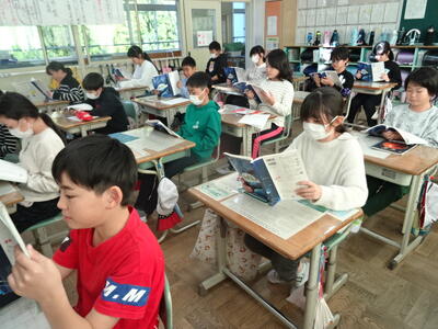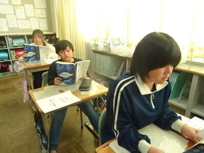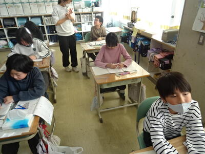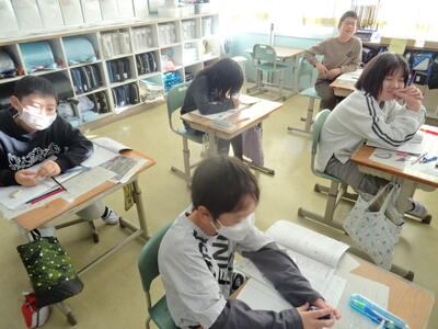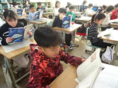 「浦島太郎」の古典の文章を読んでいます。範読を聞いた後、自分たちも声に出して読んでいました。