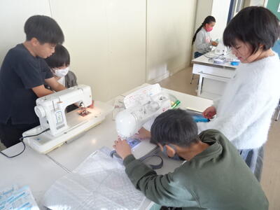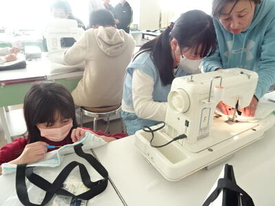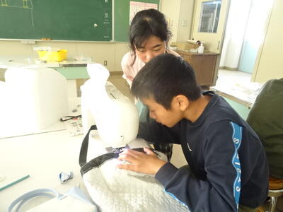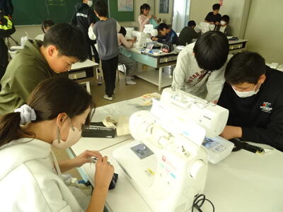 トートバッグの製作が、最終工程に入りました。しっかり返し縫いをして、丈夫に持ち手を縫い付けていました。