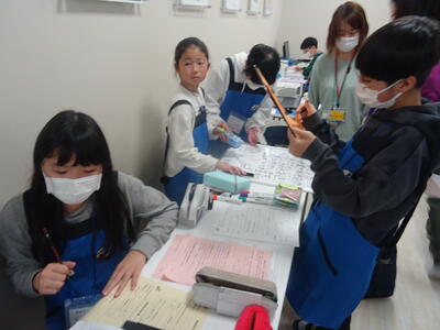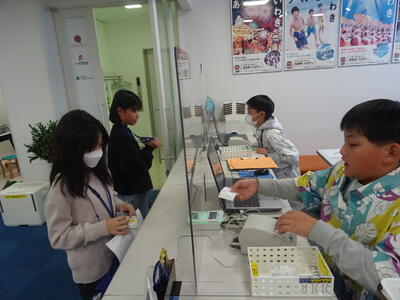 2024年12月11日 12時47分5年生がスチューデントシティに参加しました。これまでの事前学習をもとに、今回は、体験をとおして「社会のしくみや経済の働き」を学んできました。はじめは、声の大きさも行動も消極的だった子どもたちが、経験を重ねるごとに自信をもって動けるようになっていく様子が見られ、頼もしく感じました。今回一緒に活動した、中央台東小学校の5年生とも協力しながら行うことができ、とてもよい体験ができたと思います。お忙しい中、ボランティアとしてお手伝いいただいた保護者のみなさま、ありがとうございました。また、エリムのスッタフの方々、企業ボランティアの方々にも心より御礼申し上げます。スチューデントシティについては、市のHPもご覧ください。( https://www.city.iwaki.lg.jp/www/contents/1450929051695/index.html )
