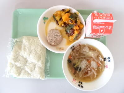 本日のメニューは、あんかけラーメン、牛乳、とりつくね、冬至かぼちゃ でした。