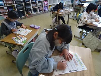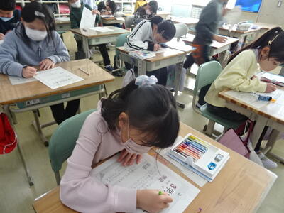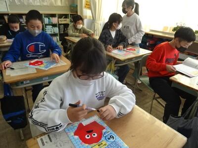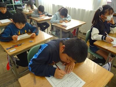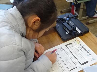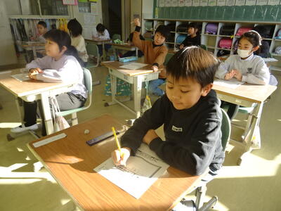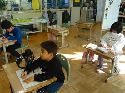 3学期初日の今日は、各教室で、冬休み中の出来事の報告や提出物の確認をしたり、3学期のめあてを立てたりする活動をしていました。