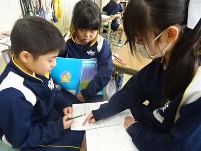 漢字の組み合わせを手がかりに、教科書にある熟語の意味を考えていました。