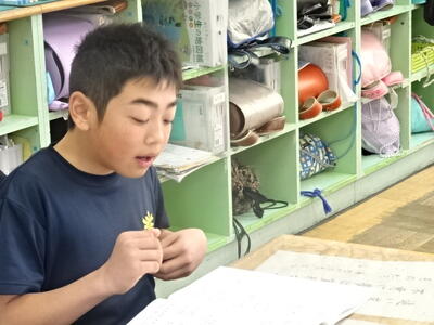 卒業式で歌う曲の練習をしていました。子どもたちが作ったカウントダウンカレンダーによると、卒業式まであと41日だそうです。