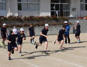6年生は陸上大会に向けた練習です。力強いスタートが見られました。